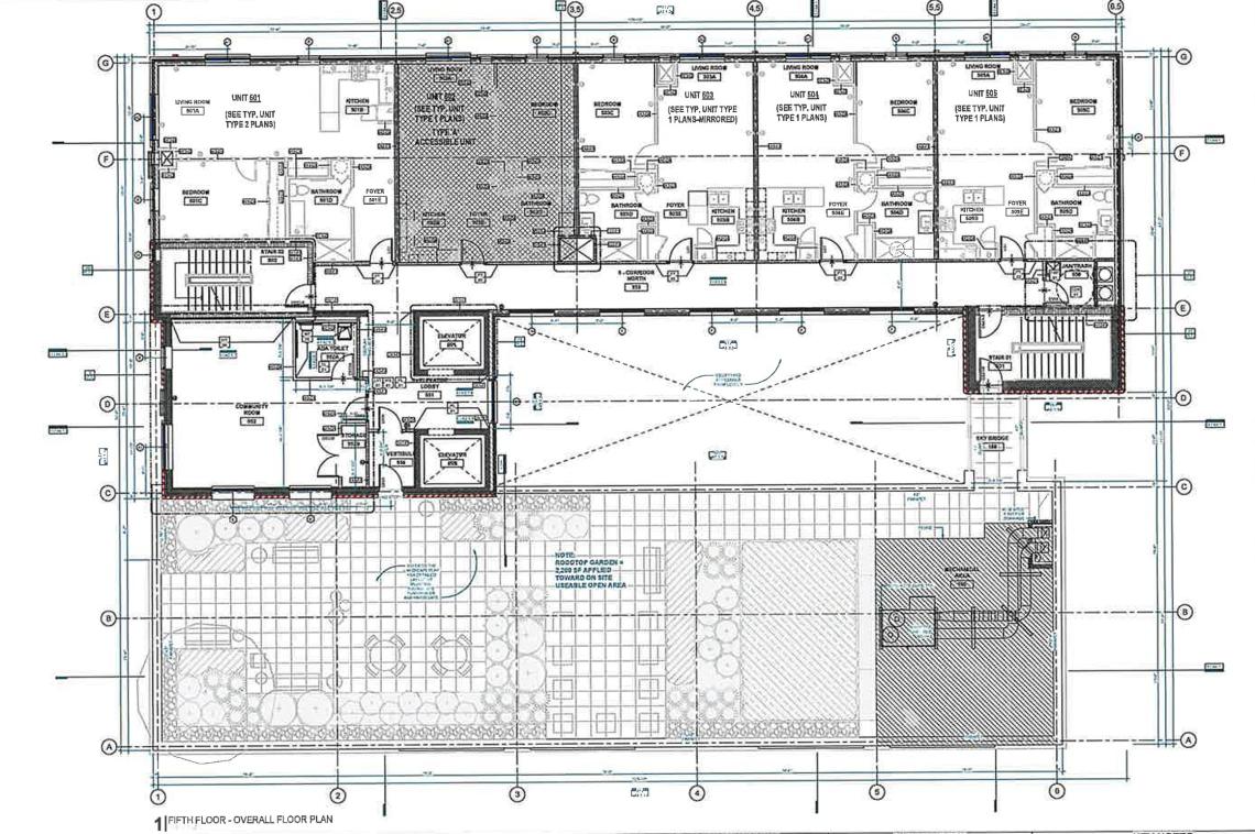 As the building rises, the typical residential floors will continue the U-shaped courtyard layout. The fourth and fifth floors will be partial floors as they eliminate the southern leg of the floor plate. An outdoor rooftop deck and terrace will be accessed on the fifth floor via a community room amenity space.