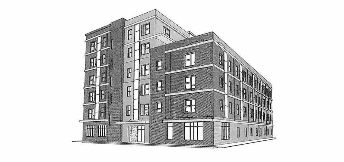 Designed by Barry Architecture, the proposed development, dubbed WBC Manor, would take shape as a six-story, U-shaped courtyard building rising approximately 66 feet in height. The building will have 46 affordable apartments served by four accessible parking spaces.