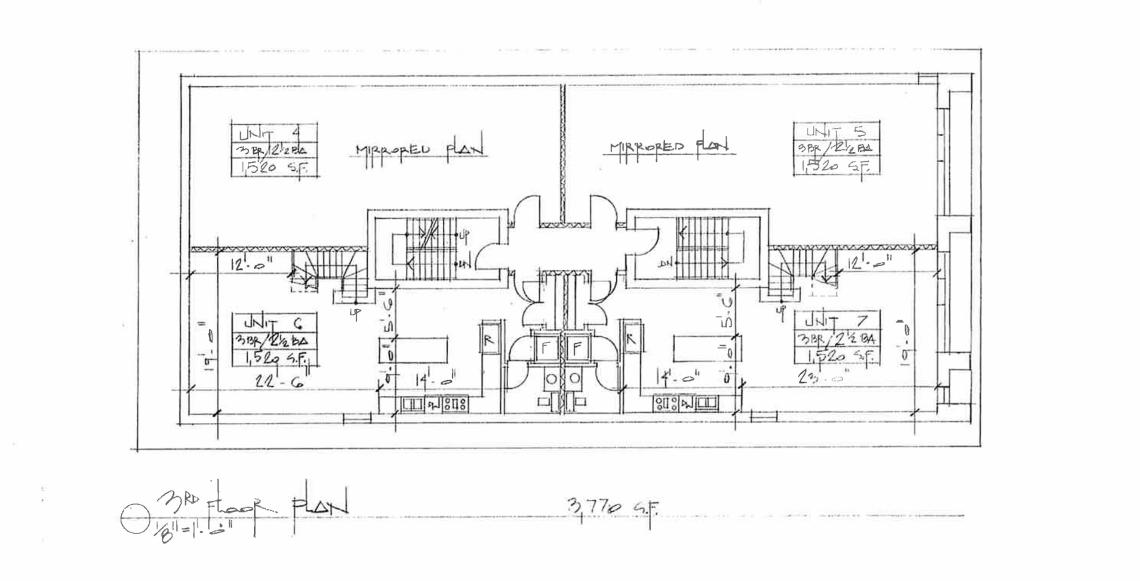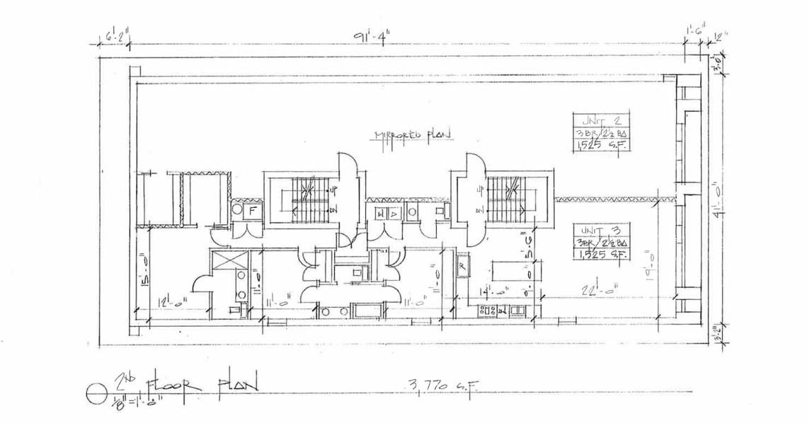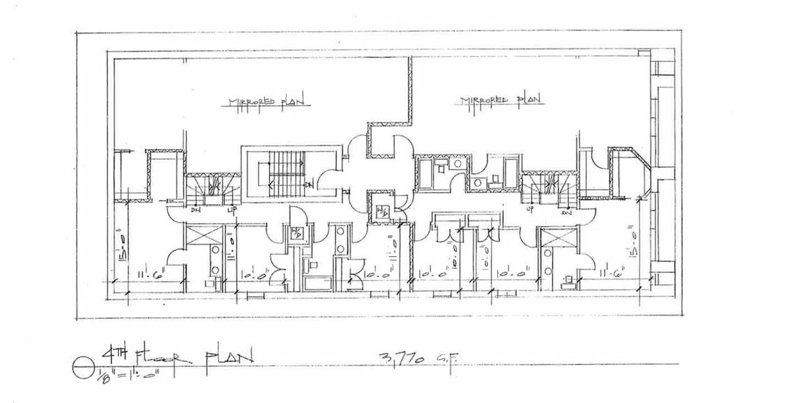 With a total of seven residential units, the upper three floors will be home to six residential units. The building’s second floor will have two three-bedroom units while the third and fourth floors will be split up into four three-bedroom duplex units. These duplex units connect up to the roof where each of the four will have private rooftop decks.
