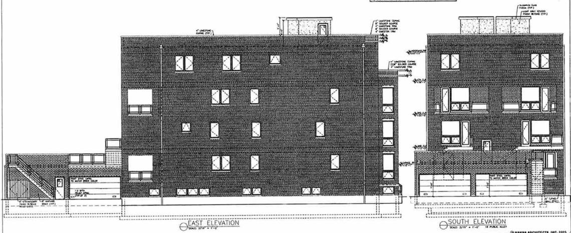Designed by Hanna Architects, the four-story brick building will stand 45 feet tall. Inside, the building will have six condominium units with six parking spaces in an attached garage accessible from the alley.