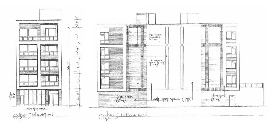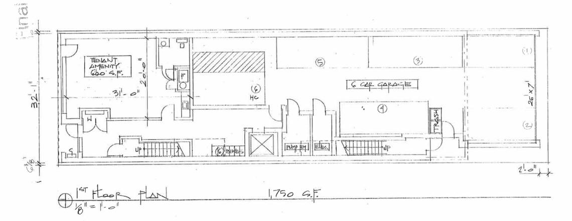 The building’s ground floor will front the street with the resident amenity space and the residential entry. The remainder of the ground floor will be made up of an interior parking garage providing six parking spaces.