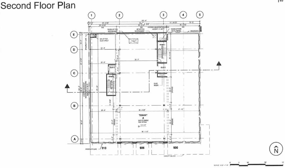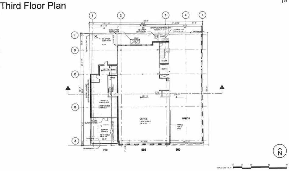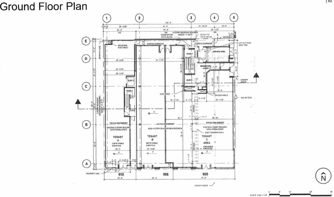 On the second floor, the entire floor plate across the three structures will be one large commercial space measuring approximately 10,000 square feet. The third floor will have office space within the 900 and 906 W. Fulton buildings with a small third floor component for the second-floor commercial tenant above the 910 W. Fulton building setback from the street.