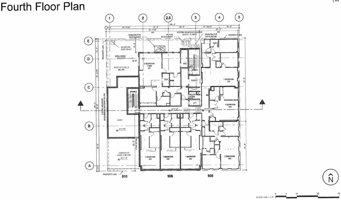 With a total of nine units, the residential component of the project will occupy the top two floors of the building. The fourth floor will have seven residential units, and the fifth floor will have two residential units. The project’s unit mix will include four one-beds and five two-beds.