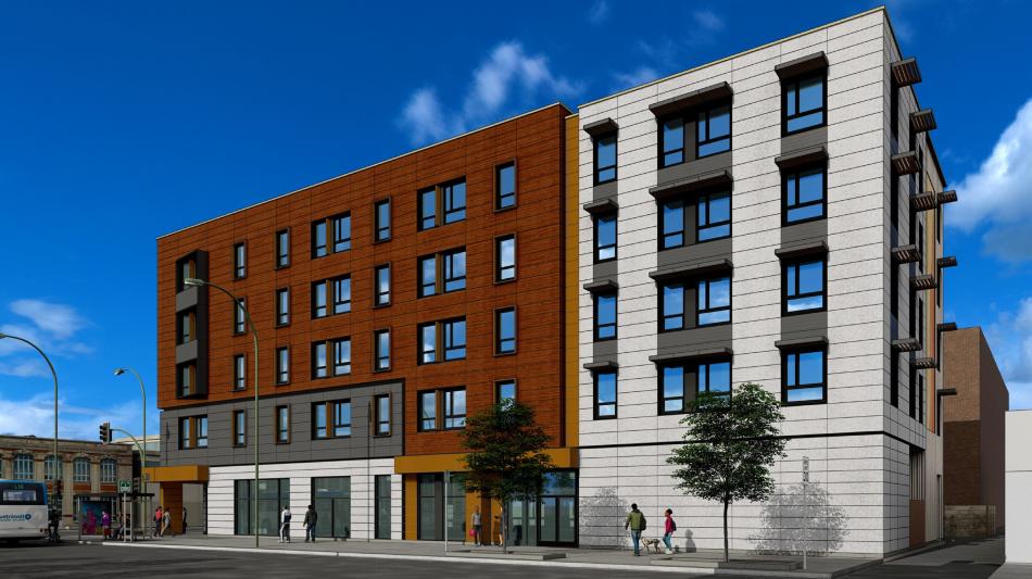 The upper four floors will hold all 44 residential units, which will all be affordable.