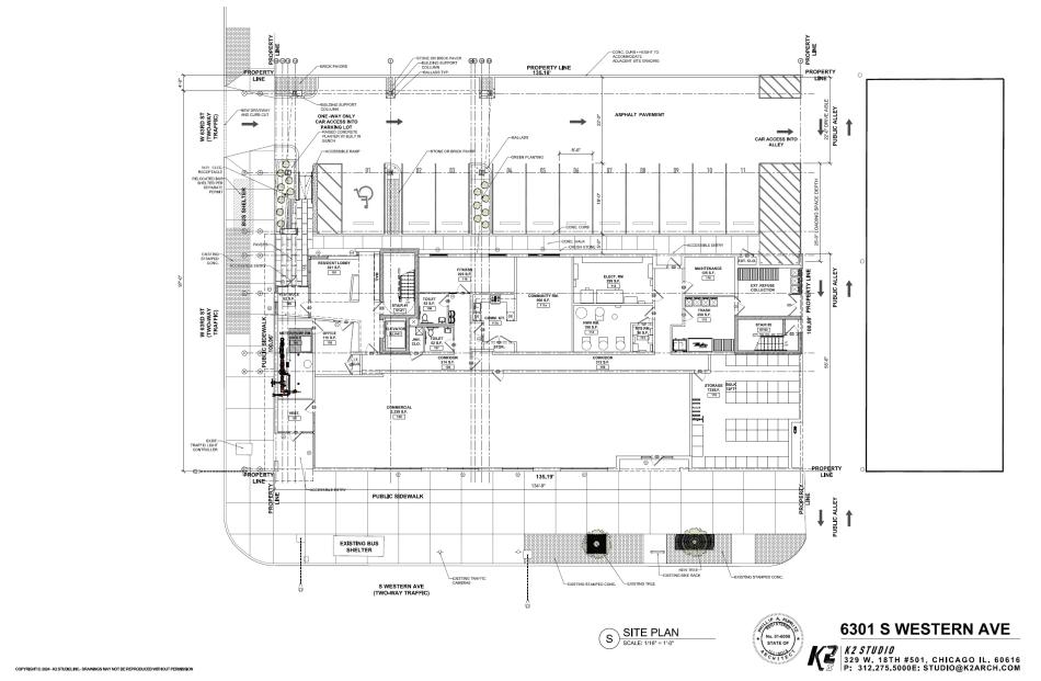 A full building permit has been issued for a mixed-use affordable development at 6301 S. Western. Planned by Southwest Organizing Project and Brinshore Development, the project will be located at the southeast corner of the intersection of S. Western Ave and W. 63rd Street. An existing building on the site will be demolished.
