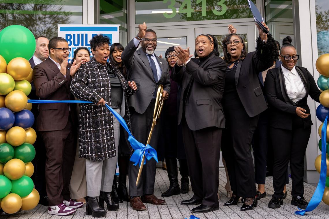 Mayor Brandon Johnson recently joined Alderwoman Monique Scott (24th), Rev. Marvin Hunter of Grace Memorial Baptist Church, DOH Commissioner Lissette Castañeda, CHA Chief of Staff Kemena Brooks, CEO of Aetna Better Health of Illinois Melanie Fernando, new residents, and members of the North Lawndale community for the ribbon cutting ceremony at the brand-new Grace Manor Apartments. Located at 3401 W. Ogden, the project was developed by East Lake Management Corporation in partnership with Grace at Jerusalem Community Development Corporation.