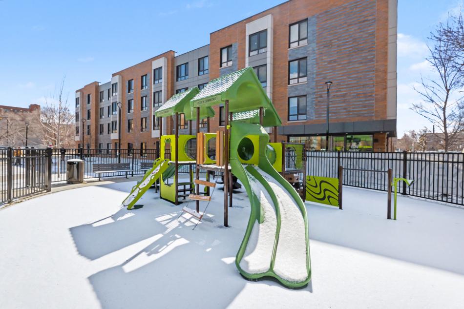 Residents of The Junction at OC Living have access to a range of amenities, including a resident lounge, fitness center, on-site laundry facilities, management and social services offices, a package and mail room, bike storage and accessory parking. Outdoor features include landscaped green space with lighted walking paths, bike racks and a rubber-surfaced children’s tot lot with play structures.