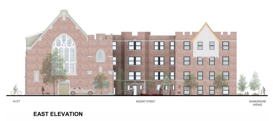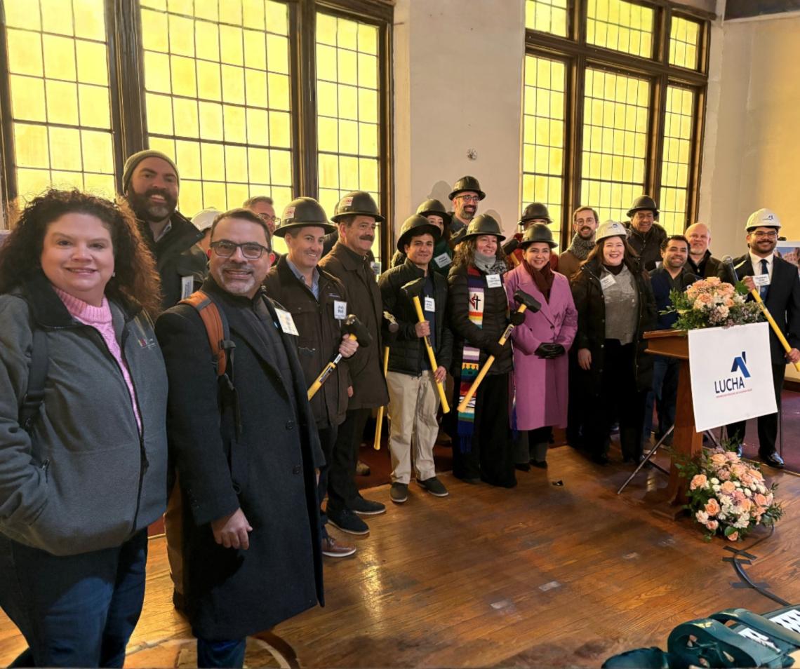 Latin United Community Housing Association (LUCHA) recently celebrated the groundbreaking and naming ceremony for La Herencia Apartments, the redevelopment of the Humboldt Park United Methodist Church (HPUMC) at 2120 N. Mozart in Logan Square. The project will preserve the facade of the historic 1928 church that sits at the corner of N. Mozart St and W Shakespeare Ave.