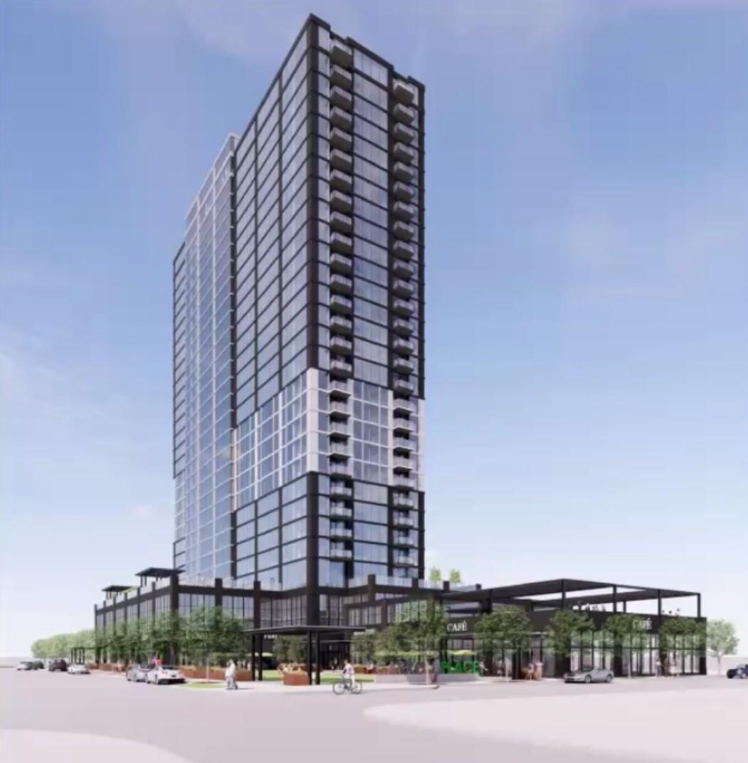 Designed by Thomas Roszak Architecture, the revised development plan calls for a 29-story mixed-use tower with 397 residential units, approximately 17,700 square feet of retail space, and 154 parking spaces. To meet ARO requirements, the project will have 80 affordable units representing the required 20% of units.