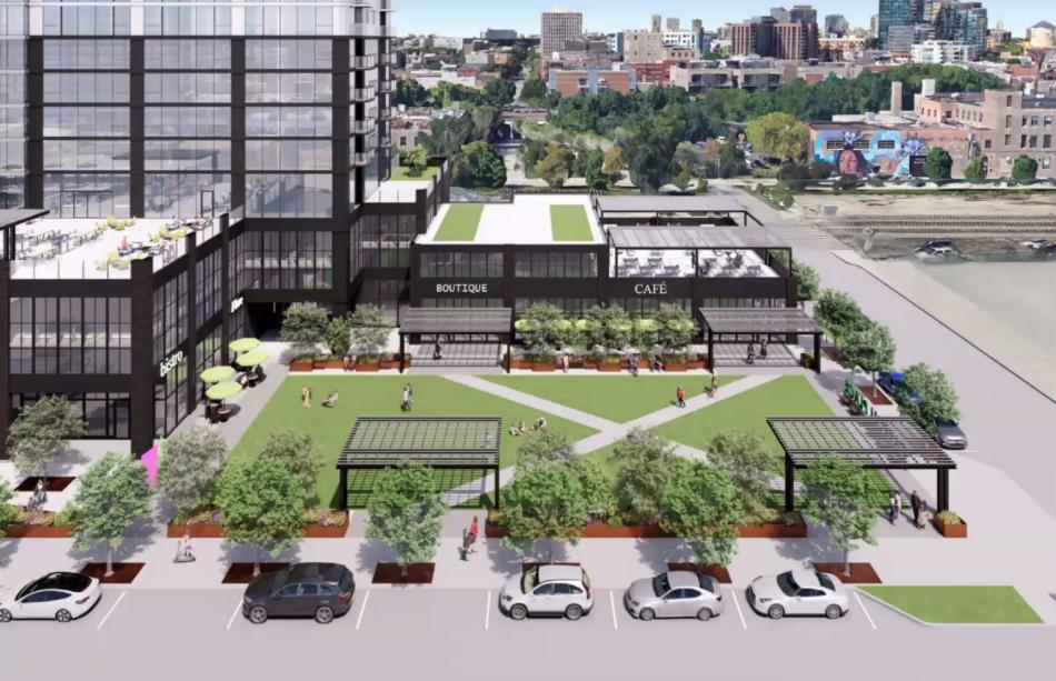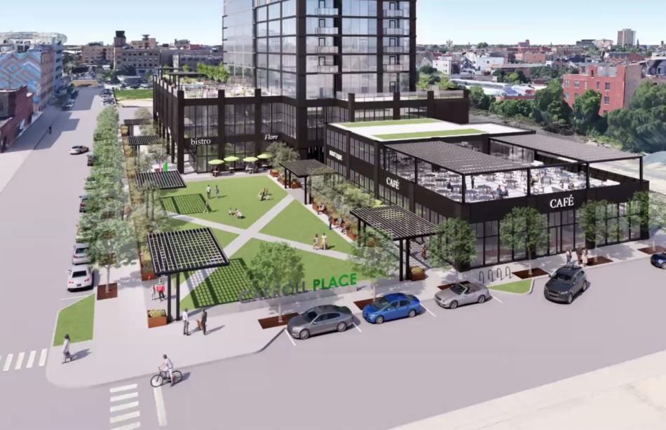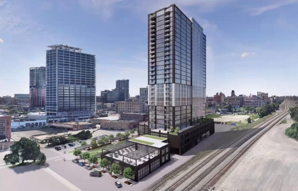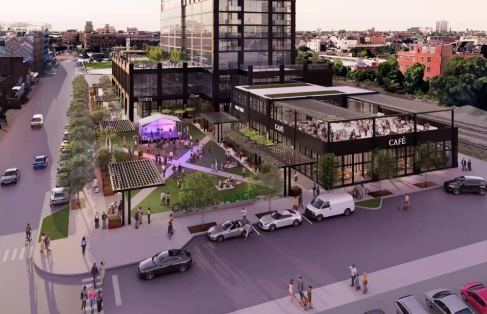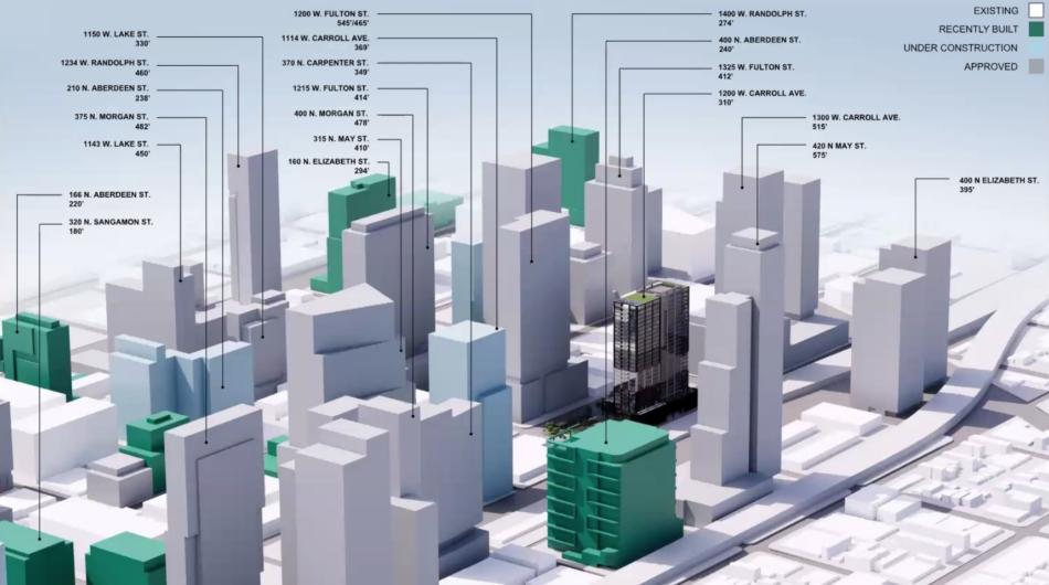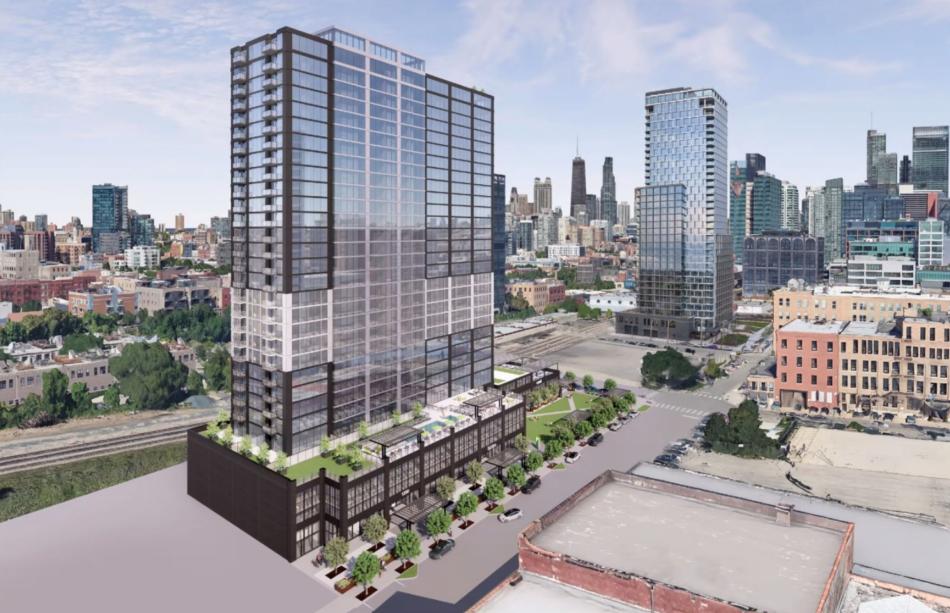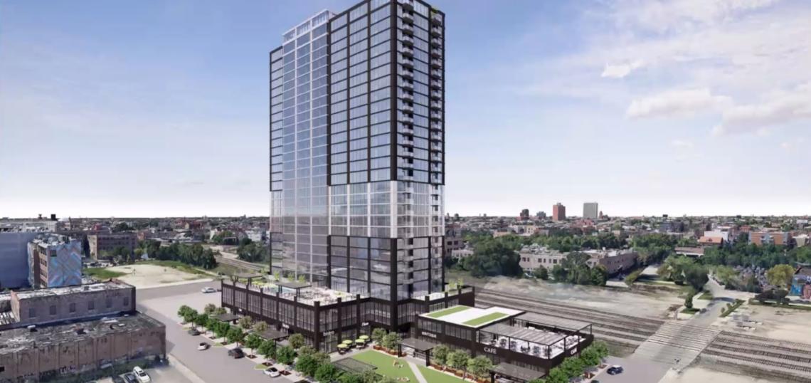 A mixed-use development in the works at 1200 W. Carroll was presented to the local community last night at a virtual community meeting. Led by Thomas Roszak of TR Management + Consulting, the site has an approved plan for a 227-foot-tall, 485,000 square foot office building by Sterling Bay but the developer put the site up for sale last summer. Located at the northwest corner of the intersection of W. Carroll Ave and N. Racine Ave, the site has been vacant since Sterling Bay demolished the existing industrial buildings on the site in 2021.