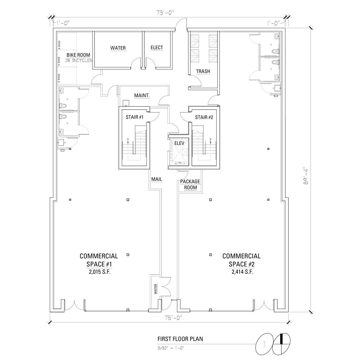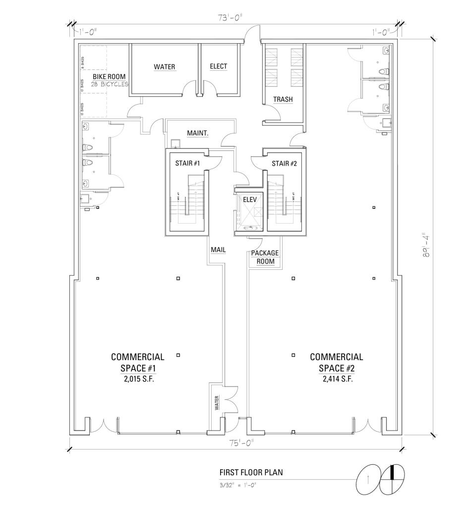 The building’s ground floor would have two retail spaces fronting W. Belmont Ave separated by the building’s residential entry. The bike room and mechanical spaces will be located at the back of the building. Eight exterior parking spaces will be located behind the building along the alley.