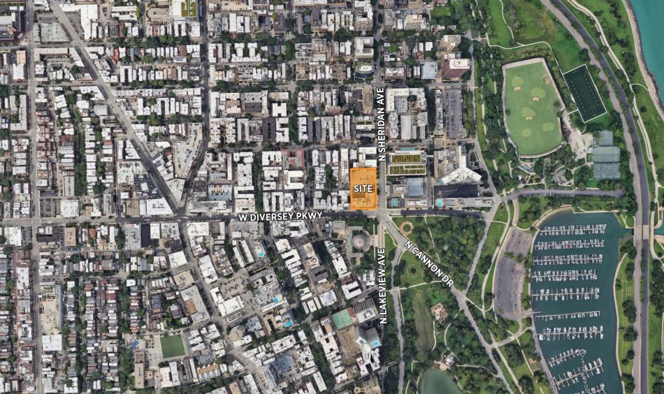 A mixed-use development is being proposed at 2800 N. Sheridan. Planned by Chicago Development Partners and Continuum Capital, the project site is located at the northwest corner of W. Diversey Pkwy and N. Sheridan Rd. The site includes the vacant medical building at the northwest corner of Sheridan and Diversey as well as the adjacent parking lot to the north.