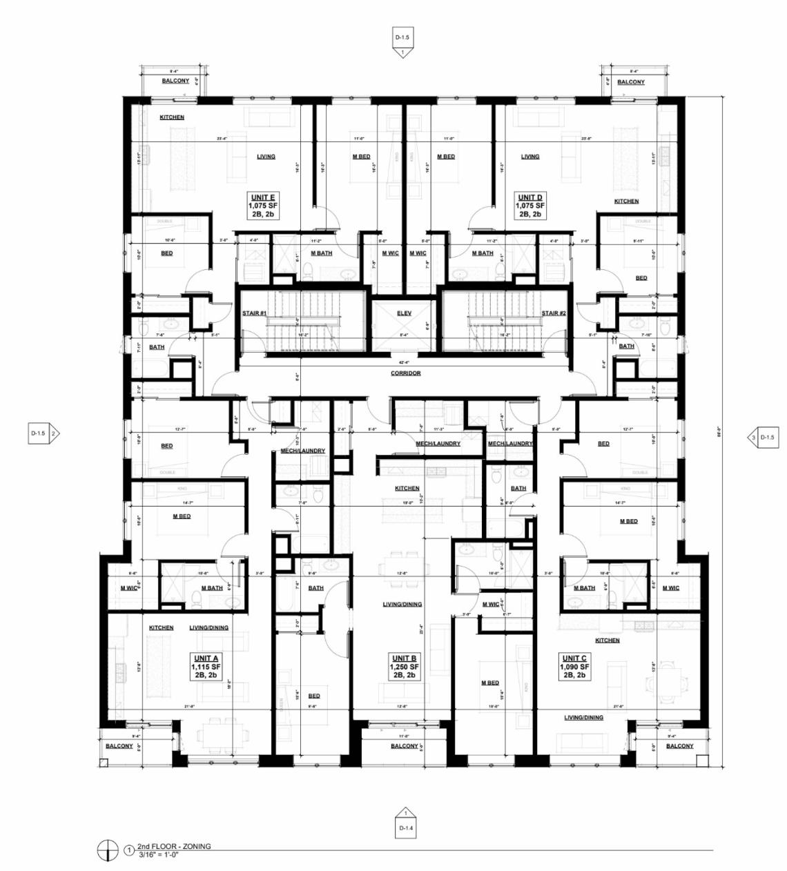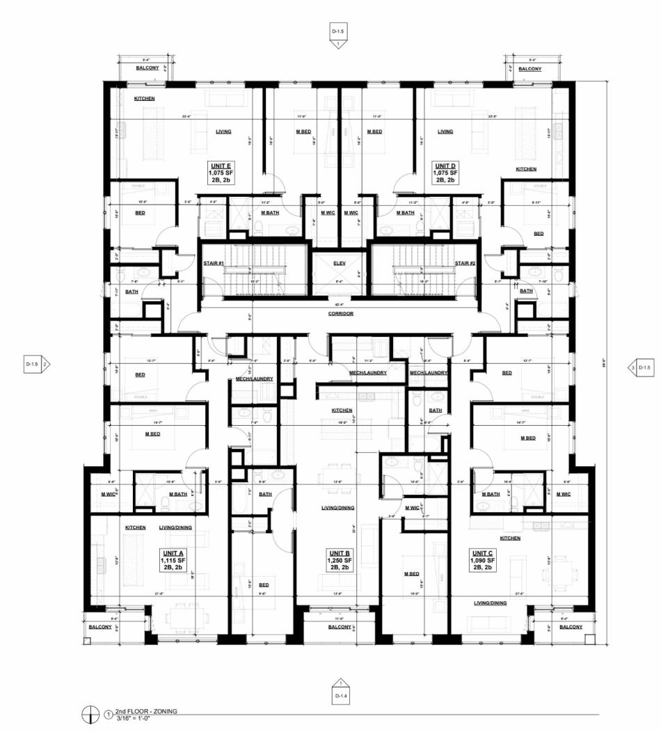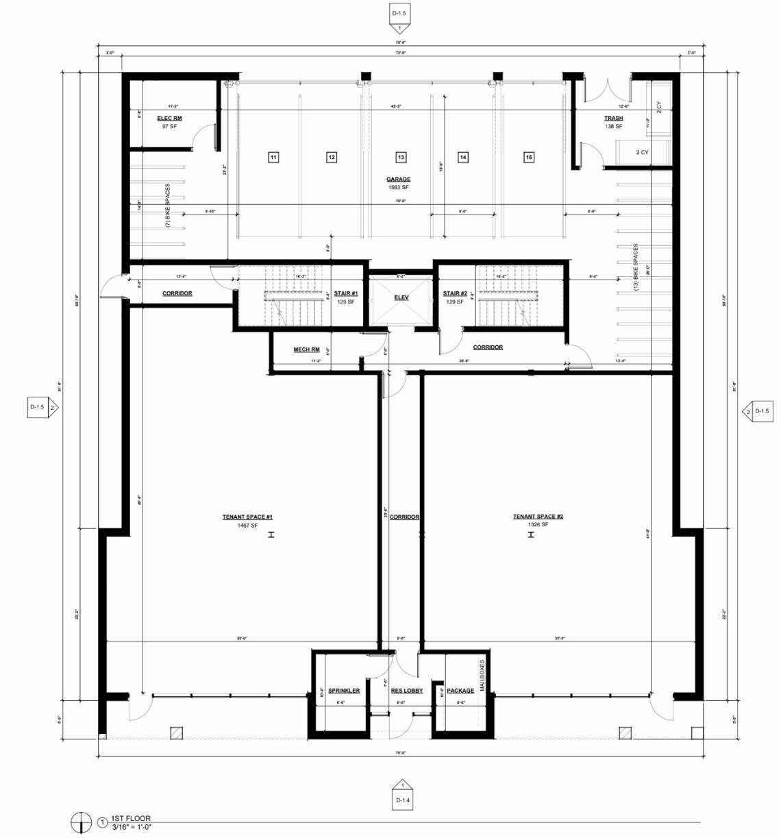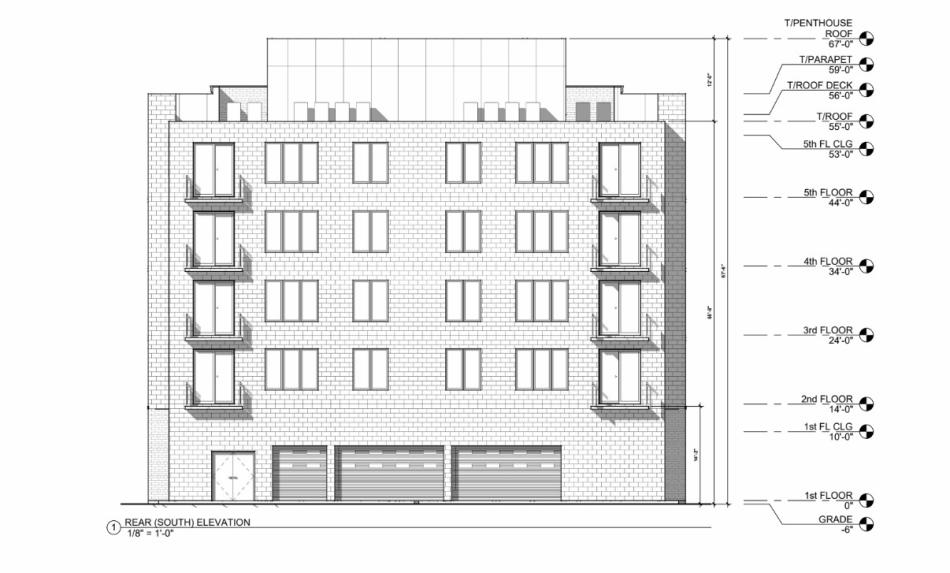 On the ground floor, the building’s street frontage will have the residential entrance at the center flanked by two separate retail spaces that will together measure about 2,800 square feet. The back of the building will have an interior garage for five cars and the 20 bike parking spaces. Accessed from the alley, the back of the property will have the remaining 10 parking spaces.
