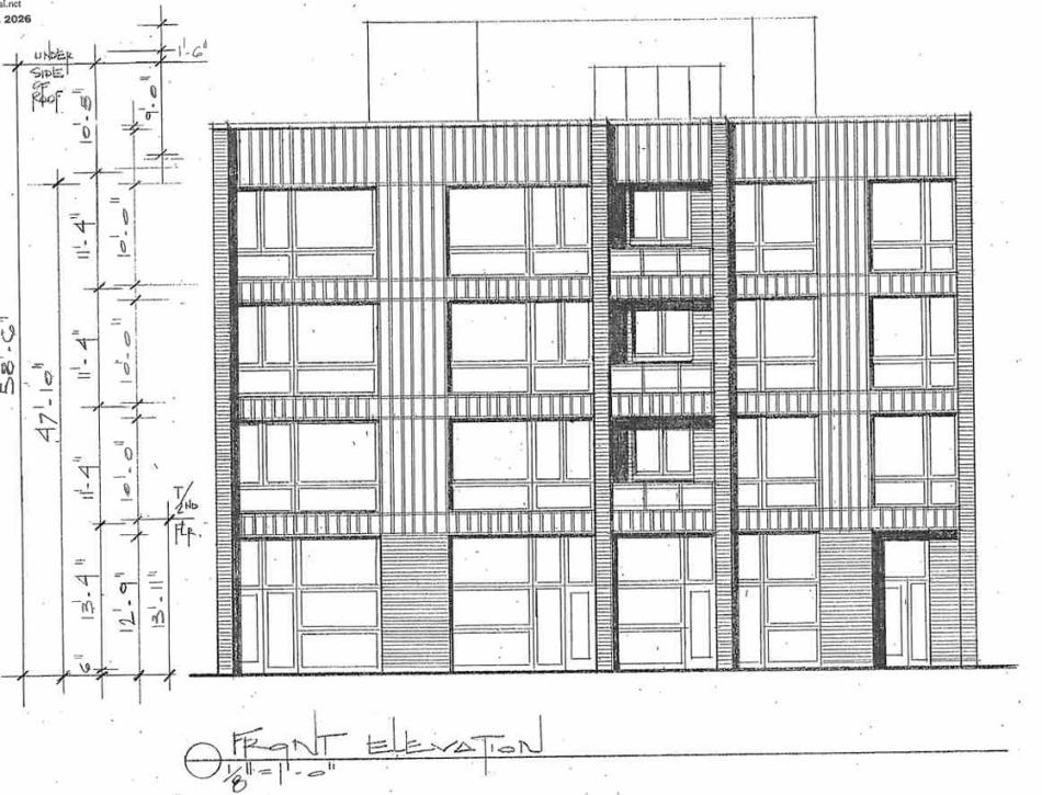 Designed by Hanna Architects, the proposed development would take shape as a five-story, mixed-use building rising approximately 59 feet tall. The project would include 1,830 square feet of ground floor commercial space, nine residential units, and nine parking spaces.