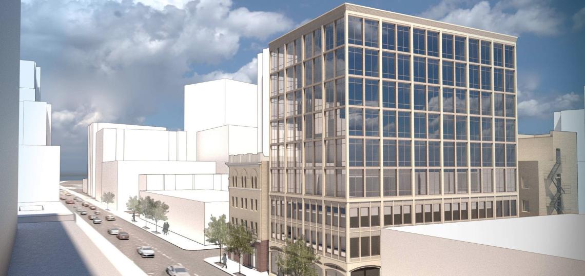 Designed by New York-based Lopergolo + Bartling Architects, the new construction would consist of a nine-story mixed-use building standing approximately 112 feet tall. The project would deliver 862 square feet of commercial space, 49 apartments, 8 car parking spaces, and 89 bike parking spaces.