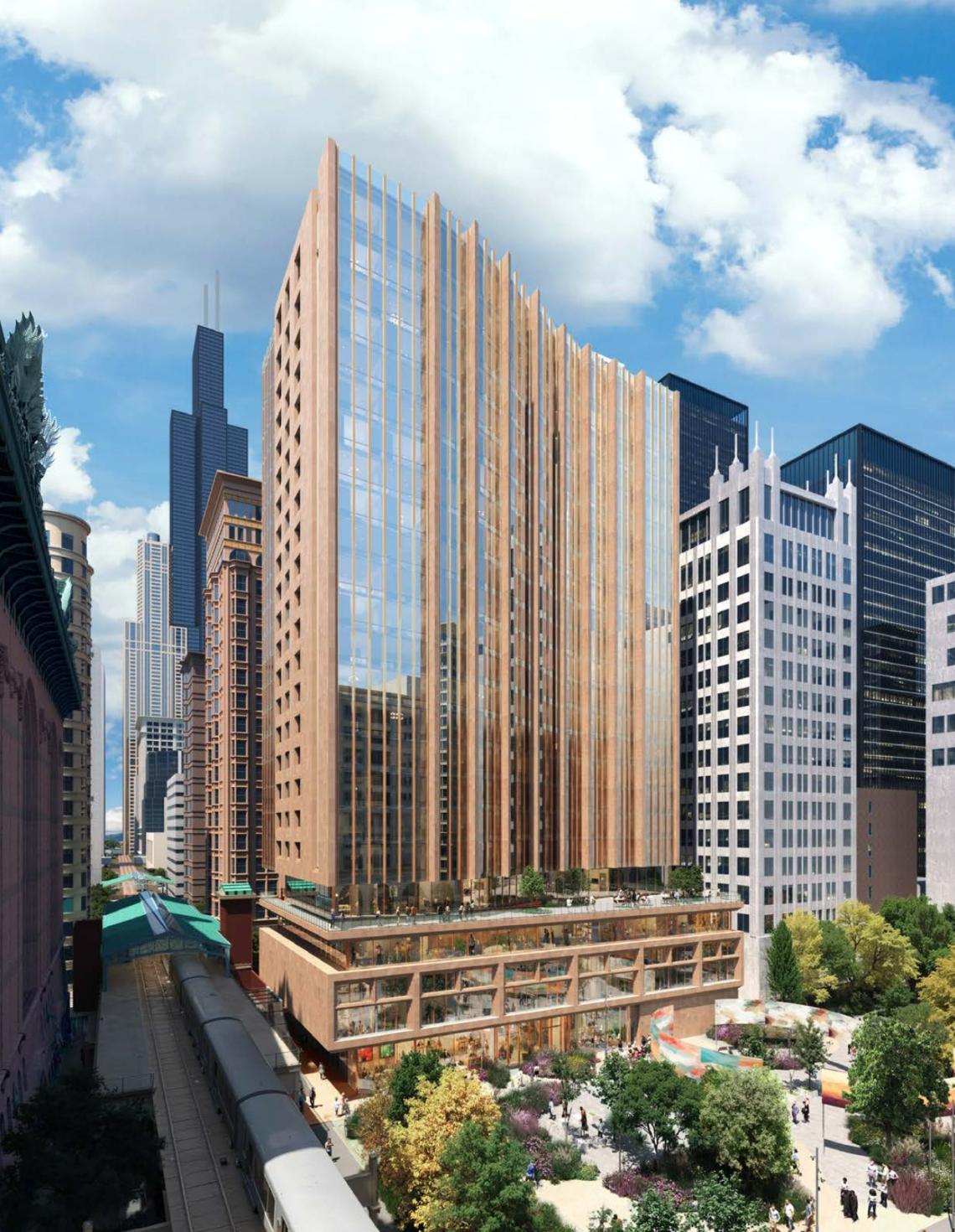 Plans also call for at least $1.5 million in developer-funded improvements to Pritzker Park at State and Van Buren streets, including a new performance space, improved lighting and public art. Potential city assistance for the project could include up to $5 million in grant funding. The proposed purchase price of the city-owned land is the site’s market value of $3.8 million.