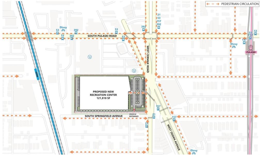The Chicago Plan Commission has approved One Lawndale Recreation Center, a new recreation center proposed at 3901 W. Cermak. Planned by Lawndale Christian Development Corporation, the project site is bounded by W. Cermak Rd to the north and S. Springfield Ave to east, with commercial and manufacturing uses to the west and south. The site was previously a CTA storage lot.