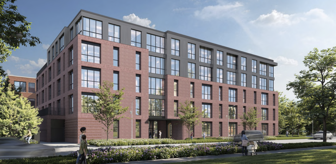 The Chicago Plan Commission has approved a residential development dubbed The Schoolhouse on Ashland at 4641 N. Ashland. Planned by Honore Properties, the project site is a current surface parking lot at the corner of N. Ashland Ave and W. Leland Ave adjacent to the former Our Lady of Lourdes School which is currently being converted into 42 apartments.