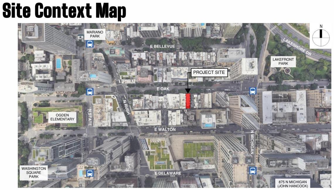 The Chicago Plan Commission has approved a Lakefront Protection Ordinance application for a retail development at 67 E. Oak in Streeterville. Planned by 67 E Oak Street LLC, the project site is a midblock property along E. Oak St between N. Michigan Ave and N. Rush St. An existing five-story multi-tenant retail building on the site will be demolished.