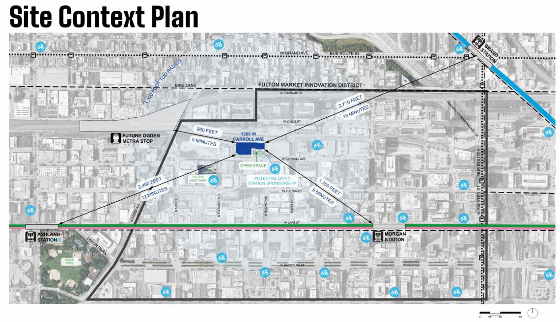 The Chicago Plan Commission has approved a mixed-use development at 1200 W. Carroll. Led by Thomas Roszak of TR Management + Consulting, the project site is a vacant property at the northwest corner of the intersection of W. Carroll Ave and N. Racine Ave. Sterling Bay demolished the former industrial buildings on the property in 2021 in anticipation of their approved office proposal for the site that did not come to fruition.