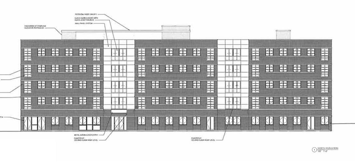 Designed by Dirk Denison Architects, the 65,000 square foot building will stand five stories tall reaching 68 feet in height. The project will have 66 residential units with a mix of studios, one-beds, two-beds, three-beds, and four-beds. 20% of the apartments will be set aside as affordable to meet ARO requirements.