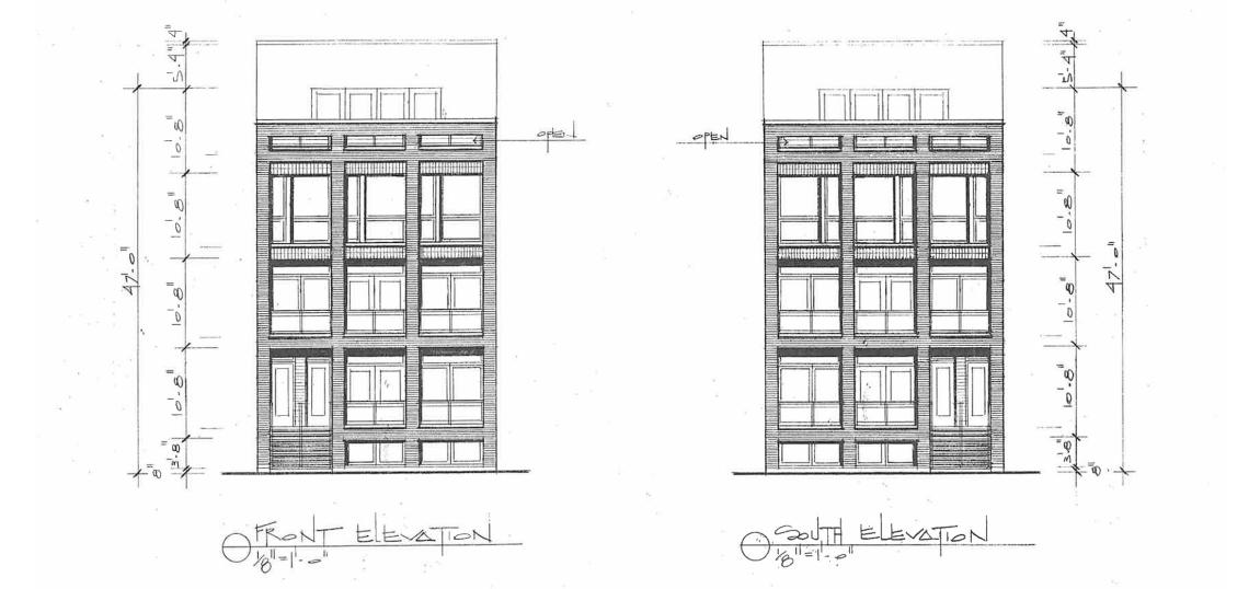 Designed by Hanna Architects, the proposed development would take shape as a four-story building reaching approximately 52 feet tall. The building is planned to include four residential units, likely condos, and four parking spaces in a garage along the rear of the site accessed from the alley.