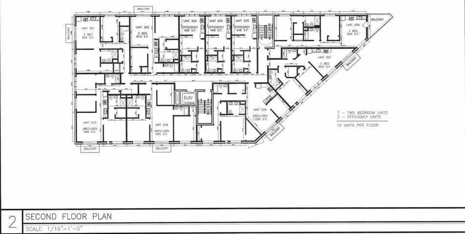 With a total of 30 apartments, the upper three floors would have 10 residential units per floor with a unit mix of 9 studios, and 21 two-beds. Select units will have private balconies hanging off the building facades and a shared rooftop deck will be available to all residents on top of the building.