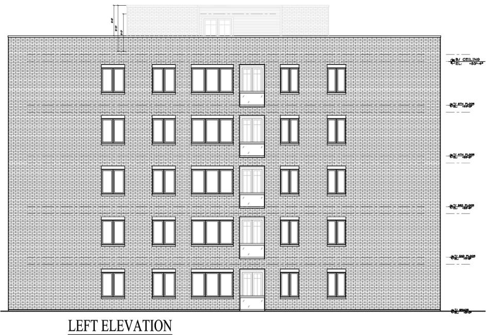 The upper floors will have six units per floor to reach a total of 27 units. All of the units will be two-bedroom layouts and have private balconies.