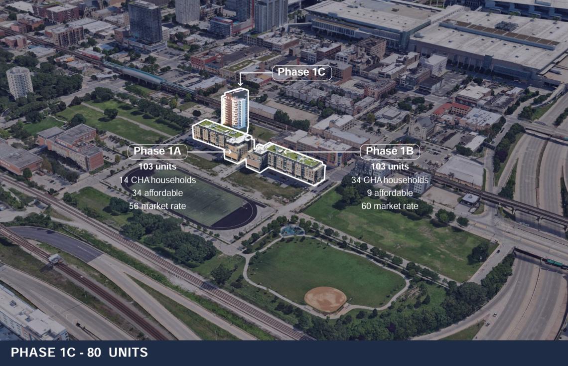The $52.3 million development will be funded with $13.65 million in equity, $15.9 million in lender financing, $10 million in CHA soft funds, $5.9 million in IHDA soft funds, a $1.28 million DTC Proceeds Loan, a $200,000 ComEd grant, $11.9 million in TIF funding, a $280,000 deferred developer fee, $6 million in IHDA risk share, and $3 million in seller financing. The three city-owned lots that the project will sit on will be sold to the developer for $1 each.