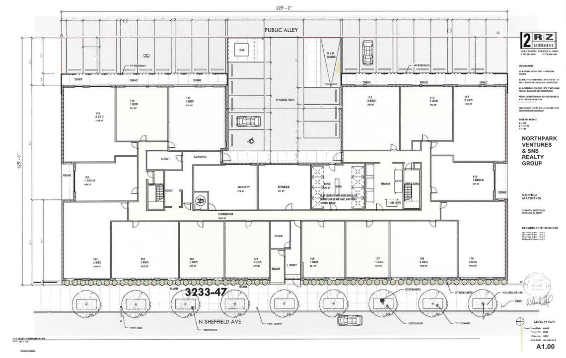 A zoning application has been filed for a proposed residential development at 3233 N. Sheffield in Lakeview. Planned by developers North Park Ventures & SNS Realty Group, the project site is located midblock along N. Sheffield Ave between W. Belmont Ave and W. School St with the CTA L tracks behind the site. The property has been home to the Torstenson’s Glass facility which is now vacant.
