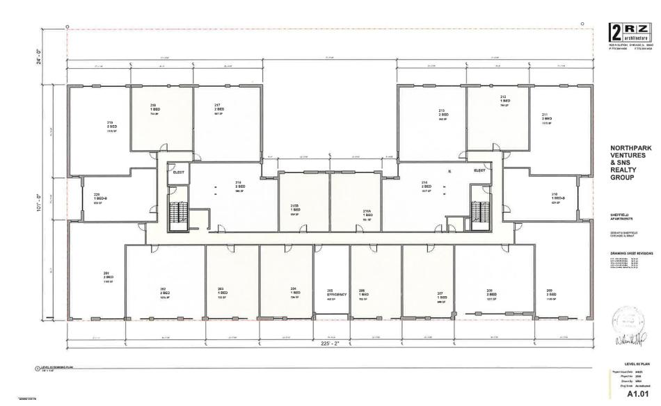 Upper floors will be all-residential and typical floor plans show 21 units per floor with the top floor having 20 units. To meet the Affordable Requirement Ordinance (ARO), the project will include 15 affordable housing units out of the 99 apartments.