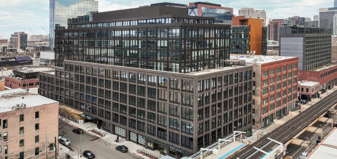 The 11-story office building stands at 217 N. Sangamon