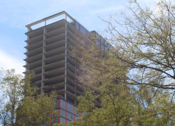 Glass is up and the crane is down at 160 N. Elizabeth