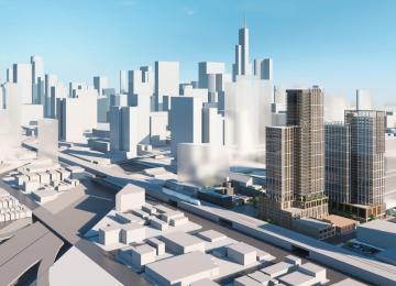 Topping out at 450 feet, the towers will rise at 370, 400, and 401 N. Morgan