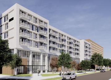 A new building will be constructed between the two existing towers of the Edith Spurlock Sampson Apartments