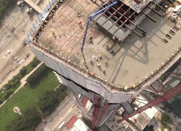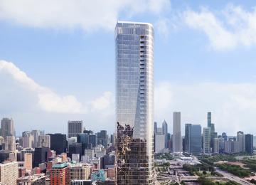 The 73-story apartment tower was designed by the late Helmut Jahn